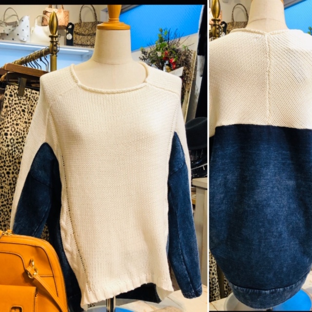 ニット❎カットデニム デザインニット💕 大人気のカットデニムのデザインニットが再入荷しました💕😍🎄 ヒップが隠れるくらいの着丈と、お洒落なデザインで大人気です お色違いで、グレーもご用意しております🥰 カットデニムデザインニット 9800円 2019年12月16日