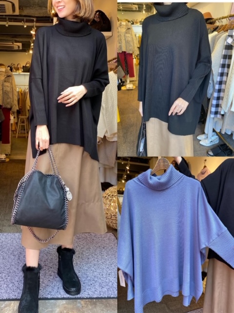 ニット13000円✨スカート11000円✨ ゆったりシルエットのニットとフレアスカートのご紹介です❣️ ニットはサイドのスリットと、袖口のリブがお洒落ポイント😊✨ 首元はハイネックですが、ゆるっとしているので締め付け感はありません✨ お色違いでブルーもございます✨ レザー風のスカートは、フレアのシルエットがとても女性らしく、合わせやすいカラーですよ❤️ ニット¥13000 スカート¥11000 2019年12月16日