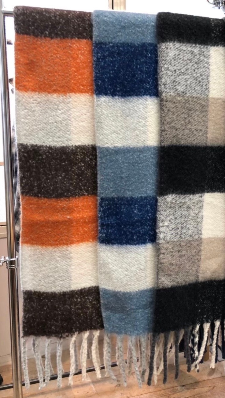 大判ストール 5900円🎉 とっても暖かい大判のストールが5900円のプチプラです💕 オレンジ、ブルー、ブラックの3カラーで入荷しております😃🎉 冬の着こなしを彩るストール、今年の新作を是非お得にゲットしてくださいねーー💕 2019年12月16日