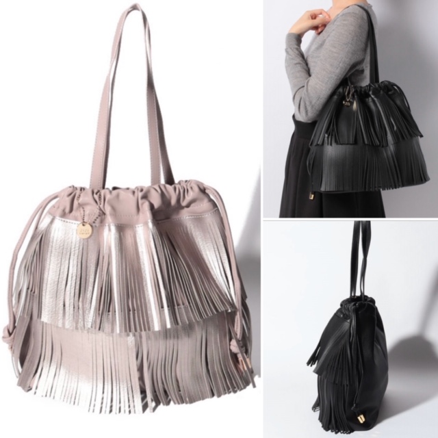 フリンジバック💕 2段重ねたフリンジがエキゾチックな巾着バックです💕 必要な手荷物などバッチリ収納出来るやや大きめのサイズ感だからデイリーユースにぴったりです👍 黒とシルバーで、近月入荷予定です💕 ブログを見てご予約のお客様に10%オフさせて頂きます🎉 フリンジバック 8500円 2019年12月17日