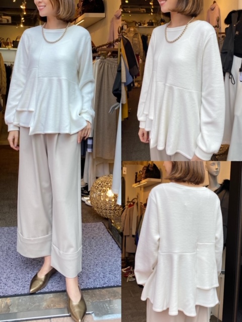 ニット8900円✨ フリルの裾がお洒落なデザインニットのご紹介です❣️ ニットはシンプルだけれど裾のフリルがとても可愛いですね🥰 写真のようにパンツに合わせても、タイトめなスカートなどに合わせてもすごく素敵だと思います💕 ニット¥8900 パンツ¥16000 2019年12月17日