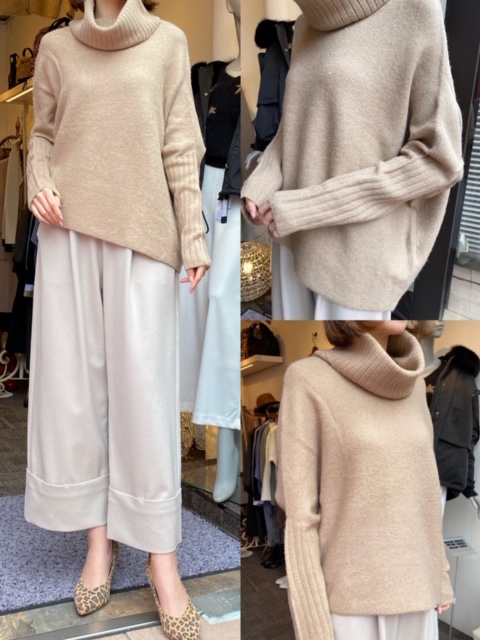 ニット¥11000💕パンツ¥16000💕 ゆったりタートルネックニットとワイドパンツのご紹介です❣️ タートルネックですが首の締め付け感ゼロのニットは袖口のリブデザインがポイントです✨ ワイドパンツは体型を拾わず綺麗なラインで履いていただけます💕 ぜひご試着にいらしてくださいね😊✨ ニット¥11000 パンツ¥16000 2019年12月17日