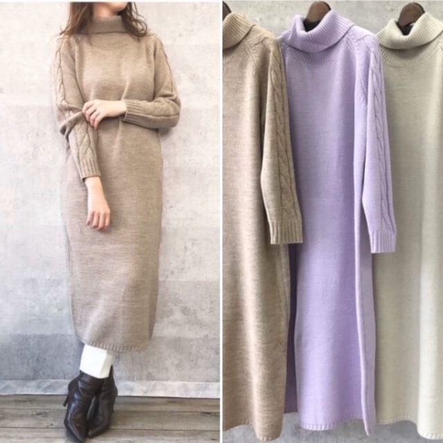ケーブルニットワンピース 30%オフ💓 サラッと軽いニットワンピはいかがでしょう? 本日より30%オフ🎉😍で販売スタート致します ベージュ、ラベンダー、ブラックの3カラーとなっております ケーブルニットワンピース 12000円→8400円🎉 2019年12月20日