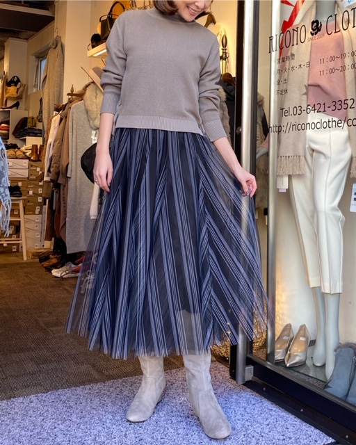 ニット8400円✨スカート13000円✨ お洒落なチュールスカートはいかがでしょうか☺️💕💕 ストライプの柄なので、甘くなりがちなチュールスカートも爽やかに着ていただけると思います💕 皆さま、ぜひお試しにいらしてください☺️ お待ちしております❤️ ニット¥12000→¥8400 スカート¥13000 2020年1月12日