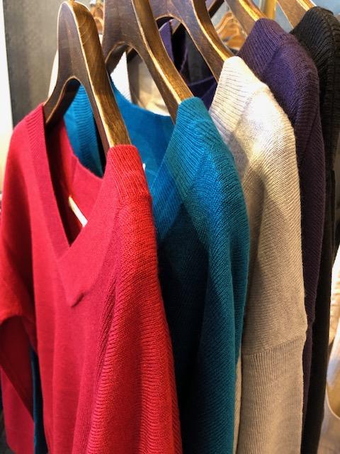 Vネックニット 2900円💕 さらっと軽いVネックニットのトップスが入荷しました💕 カシミアタッチの非ウール素材です レッド、ブルー、グレー、パープル、ブラックの5カラーです どんなアイテムともコーディネートしやすい一枚です💕⭐️🥰 2020年1月14日