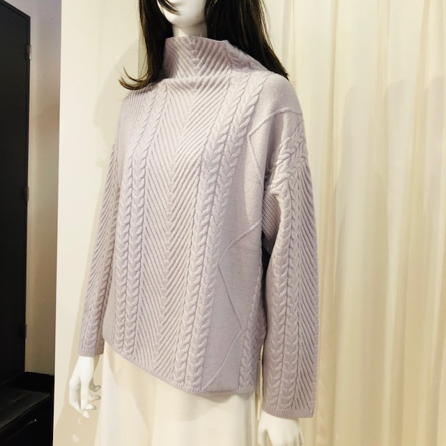 ケーブルデザインニット💕グレー ハイネックの襟元がお洒落なケーブルニットのご紹介です💕 ソフトな質感で肌触りが良い商品です💕👍 オフ白とライトグレーの2カラーとなっております⭐️ ケーブルニット 6900円→5520円😍 2020年1月14日