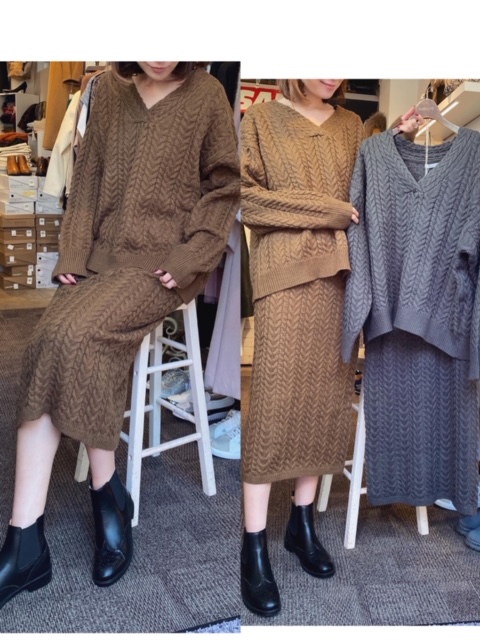 ニットセットアップ10500円💕 トレンドのニットセットアップのご紹介です❣️ ゆったりニットとタイトスカートのセットになっております。 単体でも着まわししやすいアイテムですので、コーデの幅がぐんと広がります☺️ 着ていただくだけでお洒落コーデの完成ですよ😍 カラーはブラウンとグレーです❣️ ニットセットアップ¥15000→10500 2020年1月17日