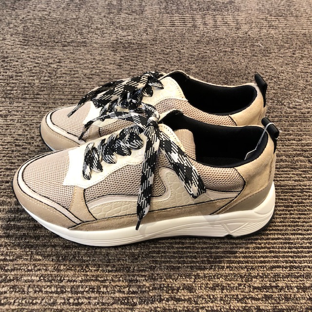 厚底スニーカー💕 ベージュ❎アイボリー❎チェックのスニーカーが到着しました💕 この春もスニーカーコーデ旋風が来ております ブラックのスカートやパンツも、ググッとオシャレで軽快な足元になりますよぉーーー こちらのメーカーは補充追加が出来ないので、お早めにゲットされてください🙌 22.5〜24.5センチで展開しております😃 2020年1月22日
