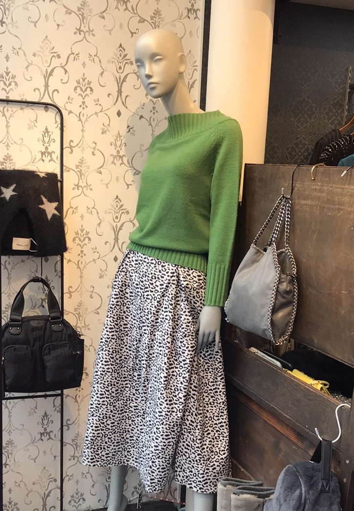 グリーンのニット 6860円😍 春らしいビビットなカラーが素敵なニットとタフタ素材のレオパードプリントスカートのコーデはいかがでしょう? 春まで着られる綺麗色カラーのニットを投入して、コーデをリフレッシュ⭐️しませんかぁ? 今季はグリーンが注目カラーとなっております💕 ニット SALE 9800円→6860円💕 スカート 8900円💕 2020年1月22日