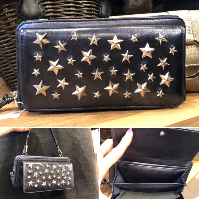 星スタッズのお財布 4900円💕 可愛い星のスタッズがとってもお洒落なウォレットバックはいかがでしょう? お写真のネイビーの他に、ガンメタ、ブラックなどございます💕 カードは20枚以上、口紅や、ちっちゃいコンパクトも入っちゃいますので、とっても機能的なバックです😍 2020年1月25日