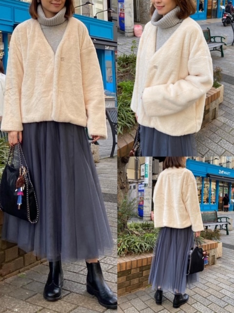 ファージャケット8960円✨スカート11000円✨ 肌触り最高のファージャケットと、様々なシーンで使えるチュールスカートのご紹介です💕💕 ・ ファージャケットはノーカラーで着まわししやすく、着膨れしないデザインです😊✨ ・ チュールスカートは、しっかりロング丈ですので高身長さんにもおすすめ😊✨ ・ トップスを変えればパーティーの際もお召しいただけますよ❤️ ・ ファージャケット¥12800→¥8960 チュールスカート¥11000 ハイネックニット¥17000→¥11900 2020年1月25日