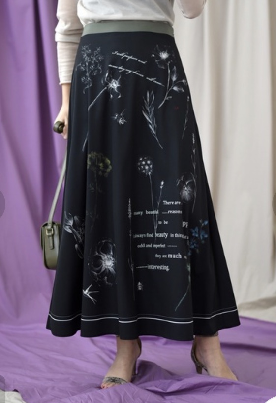 ボタニカルプリントのスカート💕 オリジナルプリントのボタニカルが都会的なセミフレアスカートが到着しております💕 春ニットと合わせて、今から春を先取り🎉 いかがでしょうか? シワになりにくいポリエステル素材も人気の秘密💕 2020年1月25日