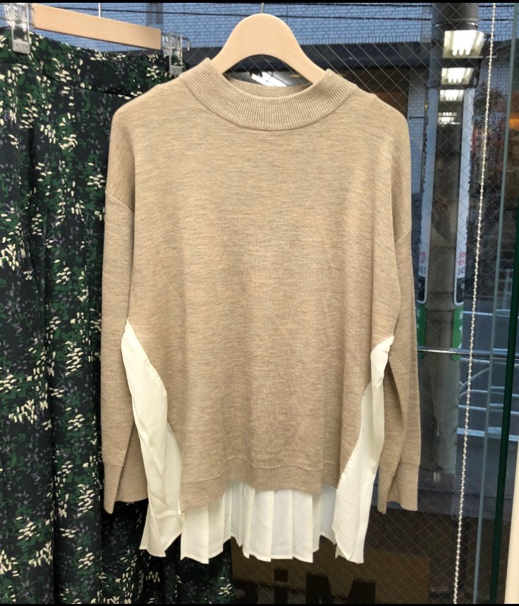 バックプリーツ トップス 40%オフ💕 春にも着られる薄手のニットとプリーツ素材のドッキングデザイントップス💕 40%オフと大変お得になっております😃🙌 グレーとベージュの2カラーで展開しております。 2020年1月25日