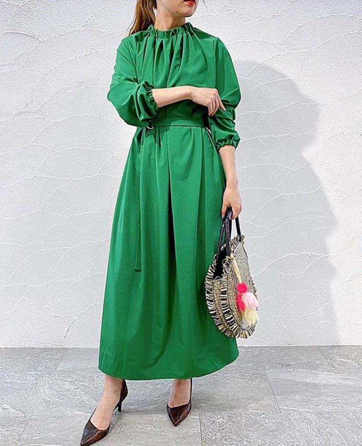 グリーンのワンピース👗 綺麗なグリーンが魅力的なワンピースが到着しました💕 シワになりにくい、しなやかなポリエステル素材でお手入れも楽チンです⭐️💕 お色違いは、マットなベージュがございます。 ベルト無しのスタイリングも素敵です😍 ワンピース 15000円 2020年1月28日