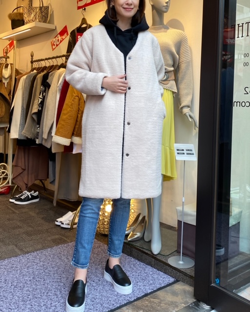 コート9660円✨ 暖かくて軽いボアコートのご紹介です💕 ノーカラーですので、写真のようにフーディーを合わせていただいても、タートルを合わせていただいても素敵です😊❣️ 大人カジュアルな雰囲気で可愛いコーデです😊✨ ボアコート¥13800→¥9660 2020年1月31日