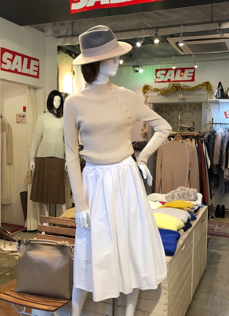 ベージュ❎ホワイト💕 春一番は、ソフトなベージュとホワイトのコーデが気になりますよねーーー? とってもピュアなイメージのコーデに気分もアップ⤴️⤴️⤴️しますね💕😍 スカートはイタリア🇮🇹からのインポートアイテムとなります お素材はコットンなので、静電気も起きません💕 スカート 7900円💕 ニット 6900円→5520円💕 2020年1月30日