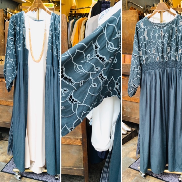 とってもお洒落なカットレースを見頃とお袖にたっぷり使った大人可愛いガウンはいかがでしょう?