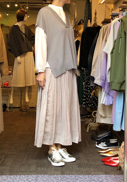 ベストのカラーがこちらのグレーとお色違いはベージュとなっております。
