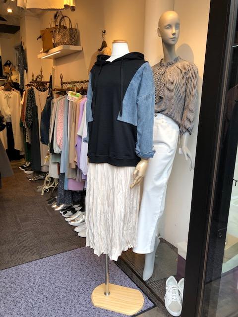 フェミニンなイメージですが、こんなカジュアルなトップスを合わせてスニーカーを履いたら、グッとこなれ感が出てお洒落です💕