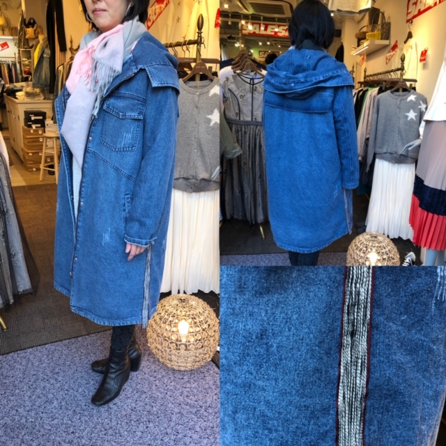 春も使えるデニムコート💕💕💕 裏ボアのフェイクファーが極暖のデニムコートは、フードのファーを外すと春も使えるコートに早変わり💕 とってもお買い得なこのチャンスに、春のコートも買っておくのは良いですねーーー デニム2WAYコート 19500円→13650円💕 2020年2月2日