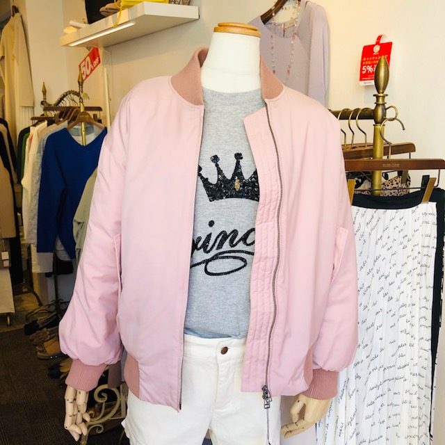 中綿ブルゾン MA-1💕 春を先取り💕のピンクのMA-1はいかがでしょうか? 中綿素材で風を通さないから、春先の寒い時に大変便利です。 甘すぎないパウダーピンクが大人コーデにしっくりと合います😍 デニムやタイトスカートでカジュアルに着るのもGOOD🎉⭐️ お買い得プライスで展開しておりますので、ぜひお店に見にいらしてくださいませー😃 2020年2月9日