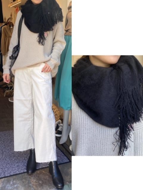 ニット¥6860💕パンツ¥12800💕ストール¥8880💕 とってもスタイリッシュな、こちらのコーディネートはいかがでしょうか💕✨ ざっくりニットとワイドのデニムパンツに、ストールとブーツの黒がポイントになっております😊 ぜひお試しにいらしてくださいませ💕💕 ニット¥9800→¥6860 パンツ¥12800 ストール¥14800→¥8880 2020年2月13日