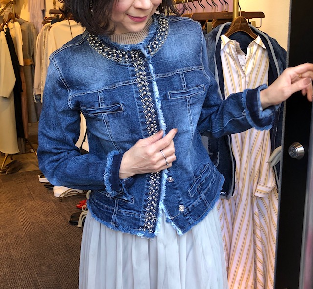 デニムジャケット💕🇮🇹 インポート パールのビジューが素敵なデニムジャケットが到着しております💕 抜群の伸縮で着心地も◎ S、M、Lの3サイズです 追加が効かない商品ですので、お早めにチェックされてくださいね💕 デニムジャケット 13800円💕 2020年2月18日