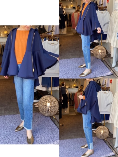 ポンチョ16800円💕 羽織るだけでお洒落に見せてくれるポンチョはいかがでしょう💕✨ 肌触りの良い生地と、ポンチョならではの柔らかい印象です✨ タイトスカートなどに合わせても女性らしくて素敵ですよ💕💕 ネイビーにゴールドのファスナーが映えますね🤩❣️ ポンチョ¥16800 2020年2月22日