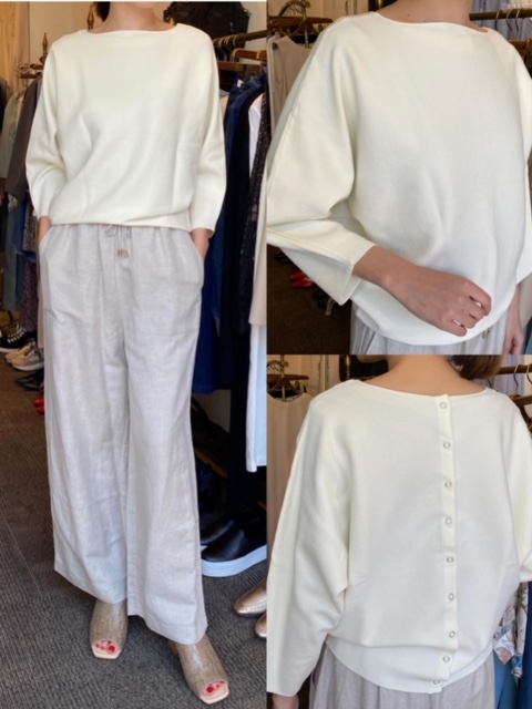 ニット¥9000✨ワイドパンツ¥11000✨ シンプルだけれどとても上品な薄手のニットと、麻混のワイドパンツを合わせたコーディネートです💕 ニットは前後どちらでも着ていただけますが、今日は後ろボタンで着てみましたよ💕 パンツは麻とレーヨン素材ですので、春先から履いていただけます✨ 麻のワイドパンツは、春夏本当に使えるのでオススメです❣️ ウエストゴムですので、履き心地もラクラク✨ ニット¥9000 ワイドパンツ¥11000 2020年2月22日