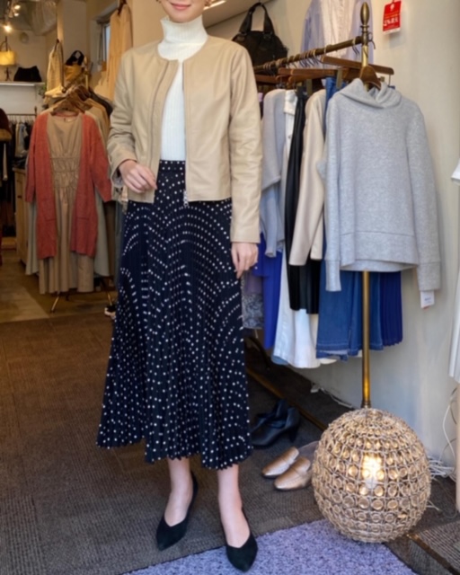 ミニドットワイドプリーツパンツ¥11800 ✨ラムレザー ノー カラージャケット¥39000✨ 大人気のプリーツワイドパンツのご紹介です💕💕 締め付け感ゼロのゆったりワイドパンツですが、履いてみるとスカートのようにも見えますので、とてもお洒落に素敵にご着用いただけます💕 こちら大人気ですので、お早めにお試しくださいませ🤗 ミニドットワイドプリーツパンツ¥11800 ラムレザー ノーカラージャケット¥39000 2020年2月24日