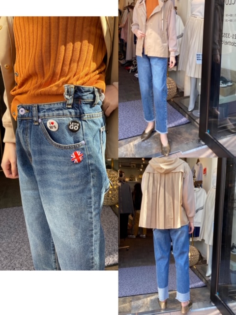 デニム¥12800💕 イタリア製の、とてもお洒落なジーンズが入荷しております❣️❣️ ポイントは何と言ってもウエスト部分のデザイン✨ そして裾の切り替えデザインです😊 遊び心のある缶バッチも可愛いですよね😍😍 ジーンズはゆったりと履きやすく、身体のラインをあまり拾わないデザインです🤗 ぜひご試着にいらしてください💕 デニム¥12800 2020年2月24日