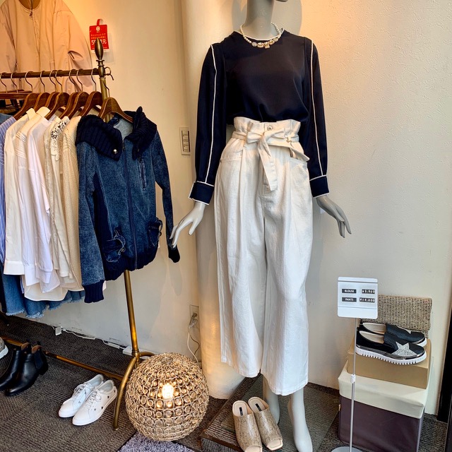 ワイドパンツ オフ白💕 爽やかさ120%のホワイトデニムのワイドパンツ💕と配色のブラウスのコーディネートはいかがでしょうか? ブラウスのステッチがアクセントになって春の着こなしが完成します👍😍 パンツは他にウォシュドブルーと、ウォシュドグリーンがございます💕 ブラウス 5900円 パンツ 14800円 2020年2月26日