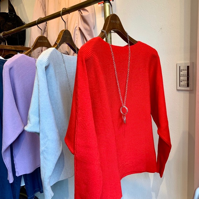ネックレス付きのニット 4900円💕 大人気のネックレス付きの春ニットが再入荷しました💕😊 赤、グレー、ラベンダー、ブラックの4カラーとなっております😍 どんなアイテムとも合わせやすく、着心地もしっとりと優しい⭐️⭐️⭐️ ニット 4900円💕💕💕 2020年2月26日