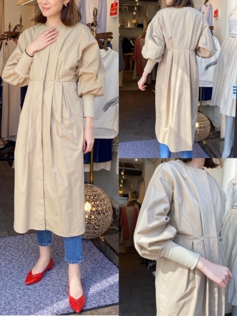 コート¥17000❣️ 春にぴったりのノーカラーコートはいかがでしょうか☺️🌸 首元はすっきりとしたノーカラーになっております✨ お袖のリブとバルーンスリーブがかわいいですね🥰 レギンスやパンツを合わせてワンピースとしてもご着用いただけますよ❣️ マスタードとベージュの2カラーとなっております✨ ぜひご試着にいらしてください😊 コート¥17000 2020年2月27日