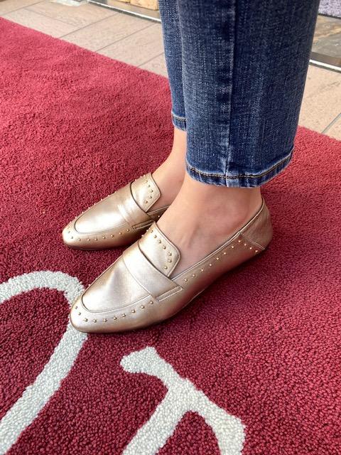 ローファー¥18000💕 どんな服装にも合わせやすいローファーが入荷しております✨ とーっても柔らかい皮で、さらに日本製ですので履き心地抜群です❣️ カラーはお写真のゴールドの他にブラックもございます😊 ローファー¥18000 2020年2月27日
