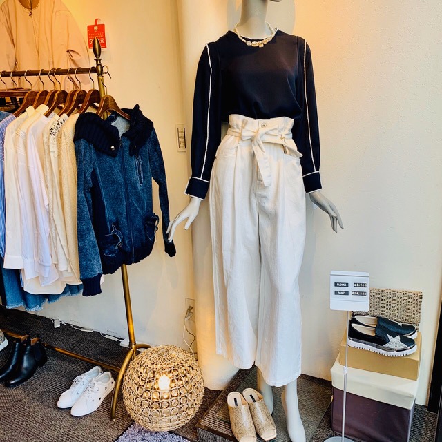 白のワイドパンツ 💕 薄手のデニム素材がお洒落なワイドパンツが大好評💕です デニム素材なので通年履ける白パンツとして大活躍しそう⭐️⭐️⭐️ お色違いでサックスブルー と、スモーキーグリーンもございます ブラウス 5900円 パンツ 14800円 2020年2月28日
