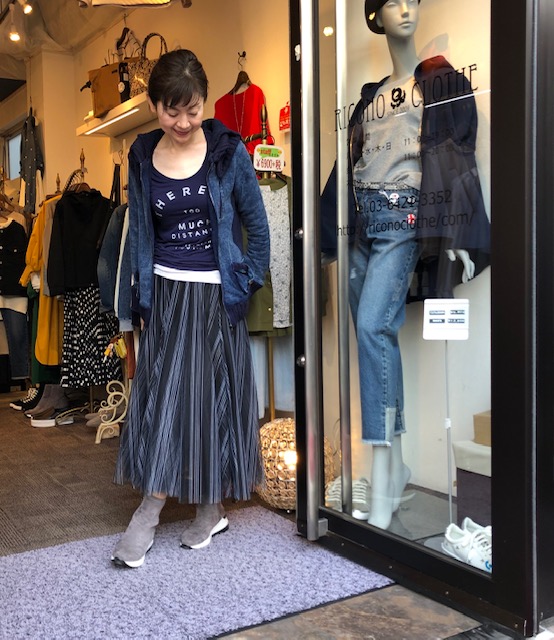 デニムジャケット💕9800円 カットデニムとリブの切り替えがお洒落なジャケットが大好評です💕 ストライプのプリントチュールスカートに合わせて、春の大人可愛い💕スタイルに💕 スカート 13000円💕 2020年2月28日