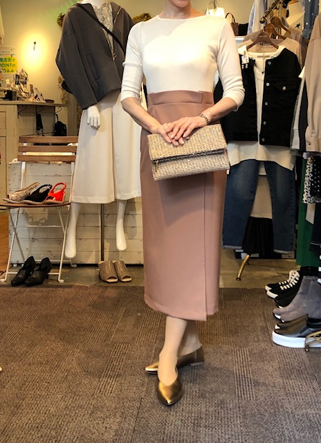 Iラインののワンピース💕 チュールスカートが全盛の今季ですが、こんなシックなイメージのタイトスカートもジワジワと人気が出てきてます😍 少しタイトめなラインなので、S〜Mサイズの方にお薦めの一枚です💕 ワンピース 20000円💕 クラッチバック 7900円💕 2020年2月28日