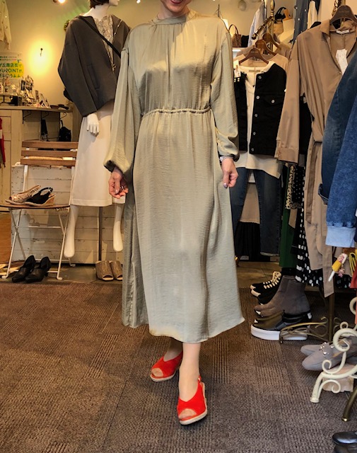 サテン素材のワンピース💕 今季のトレンド💕シャイニー素材のワンピースが到着しました。 お写真はスタンドネックで着ておりますが、前後着用可能なので、ボタンを開けて着ることも可能なデザイン💕となっております ウェストの紐で自分の体型に合わせて調節可能なので、着心地も楽ちん😍 もちろんホームクリーニングOKで、忙しい貴女にぴったりです お色違いは、シャンパンベージュになります。 サテンワンピース 12800円 サンダル 9500円 2020年2月28日