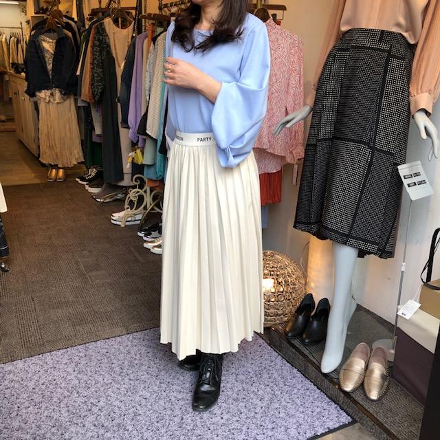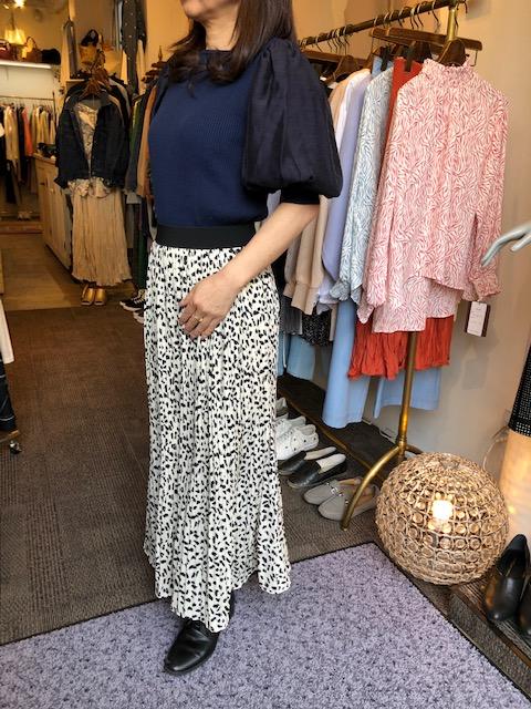 袖シフォントップス 13000円💕 初夏まで着られるお袖シフォンのトップスはいかがでしょうか? サラッとしたサマーニットとお袖のシフォンがとってもお洒落な一枚です💕 使えるネイビーならヘビロテ間違い無しです💕 スカート 8900円💕 2020年3月1日