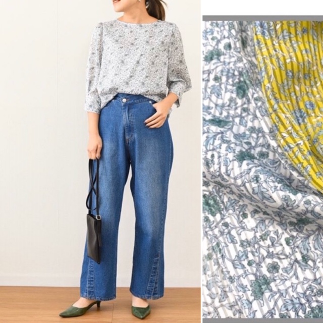 小花柄ブラウス💕6900円🎉 上品なサテンストライプの生地にオリジナルの小花柄をプリントしたお洒落なブラウスはいかがでしょうか?💕 セットインのお袖なので肩幅をタイトにすっかり見せてくれる効果が嬉しい😍 ポリエステル100%なので、ホームクリーニングしていつでも新品同様なのもGOOD🎉⭐️👍 合わせたデニムパンツは、少し短め丈なので、150センチ〜160センチまでの方にお薦めです💕 丈詰め不要でデザインデニムが楽しめるチャンスです デニムパンツ 7900円💕 2020年3月1日