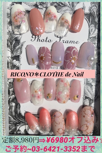 春のネイルサービス💕🌸 6980円💓 繊細な桜モチーフや手書きデザインで指先を華やかにしてみませんかーー? 指先が綺麗だと見ているだけで癒されます🥰 昼間さんのネイルサービス日程 3月4日 水曜日 3月11日 水曜日 3月14日 土曜日 3月20日 金曜日 3月25日 水曜日 ご予約制となっておりますので、店頭又はメールにてご予約お待ちしております 電話 0364213352 11時〜19時 メール shop@riconoclothe.com 24時間対応 2020年3月2日