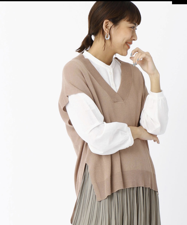 ニットベストのセットアップ💕5900円 大ぶりのニットベストにノーカラーのブラウスを合わせました。ニットベストはゆとりを持たせ、リラックスして着られるよう配慮。大ぶりなディティールながら、スリットを入れ、動きやすいデザインに⭐️デニムとあわせればカジュアルスタイルの完成です💕 2020年3月11日
