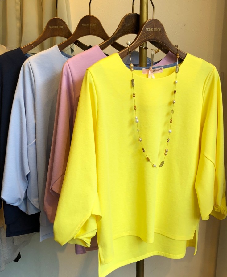 春色のトップス 5900円💕 爽やかな春色のトップスが再入荷致しました💕 綺麗なカラーはすぐに完売してしまうので、お早めにゲットして下さいませねーーー 美鎖骨シルエットのランドネックと、ふんわりボリームのお袖がお洒落な一枚です💕💕💕 他にオフ白がございます 2020年3月14日