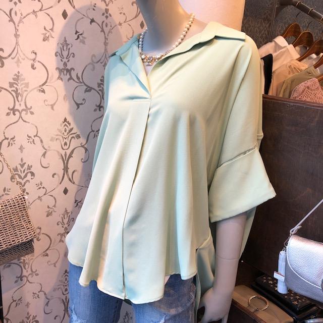 ペールグリーンのシャツブラウス 💕 今年らしいペールグリーンの抜き襟シャツブラウス が到着いたしました💕 オフホワイトとグリーンの2カラー💕 とろみのあるポリエステル素材が女らしい1着です お色違いはアイボリーとなっております ブラウス 12000円💕 コメントは受け付けていません。