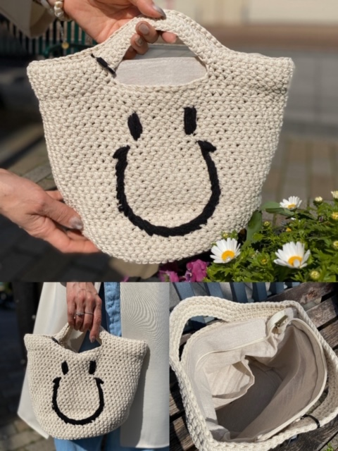スマイルバッグ¥6500😊 スマイルのデザインがとてもキュートなバッグはいかがでしょうか✨✨ 中にはポケットがあり、上部にはファスナーもついているので使いやすいですよ🤗💕💕 スマイルバッグ¥6500 2020年3月24日