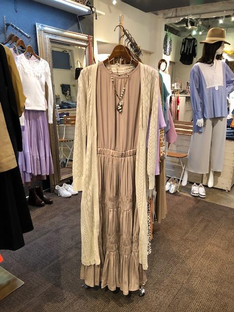 サテン2WAYワンピース💕 細かい繊細なステッチがお洒落なワンピースに透かし編みのロングカーディガンを合わせたスタイリングはいかがでしょう?💕 ワンピースのお色違いはミントグリーン💕 カーディガンのお色違いはブラックとカーキがございます😍 ワンピース 22000円 カーディガン 14000円 2020年3月27日