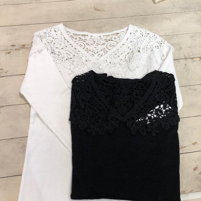 レースデザインカットソー💕 春先の着こなしに欠かせないインナーカットソーが到着しております💕 ブラウスやワンピースなど、それだけではまだ寒いアイテムのインナーに着ると、とても暖かく襟元のレースがとってもお洒落な一枚⭐️ コットンのテレコ素材で何年経っても着られるヘビロテアイテムになりますよ😃🙌 レースカットソー 6900円💕 2020年3月3日