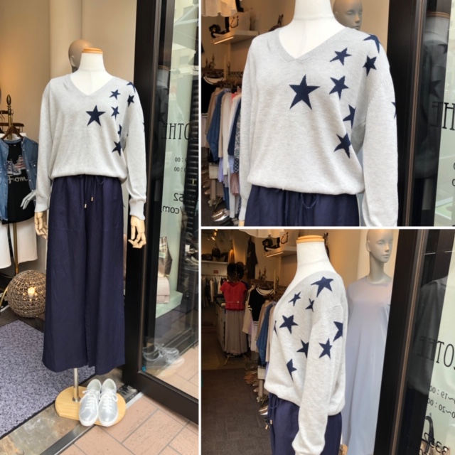 星モチーフのニット💕 完売していた星モチーフのニットが一枚入荷しました💕 レーヨン❎コットンのとってもソフトな着心地です💕 ご配送も無料でさせて頂きますのでお気軽にお申し付けください💕 ニット 8900円💕 パンツ 11000円💕 2020年4月17日