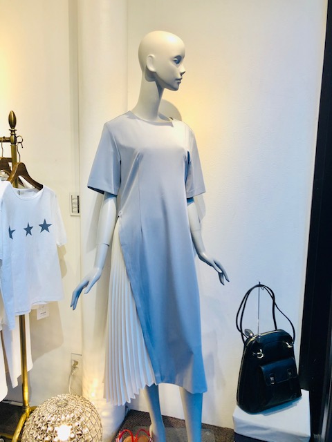 サイドプリーツワンピース💕 サイドにプリーツをドッキングした今年らしいデザインワンピースが到着しました💕 サックスブルー ❎ピュアホワイトが爽やかなワンピースです お色違いはブラック❎ブラックのシックなカラーになります ワンピース 19500円 送料無料でご配送させて頂きますのでお気軽にお申し付け下さい💕 2020年4月17日